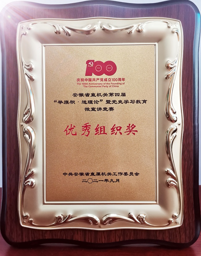 9月23日,安徽省直机关第四届“举旗帜·送理论”暨党史学习教育微宣讲竞赛决赛在合肥举行。我会普教咨询(科研)处张淞硕同志经过预赛选拔、视频评选、集中培训等环节激烈角逐,以出色表现荣获二等奖;机关党委获得优秀组织奖。