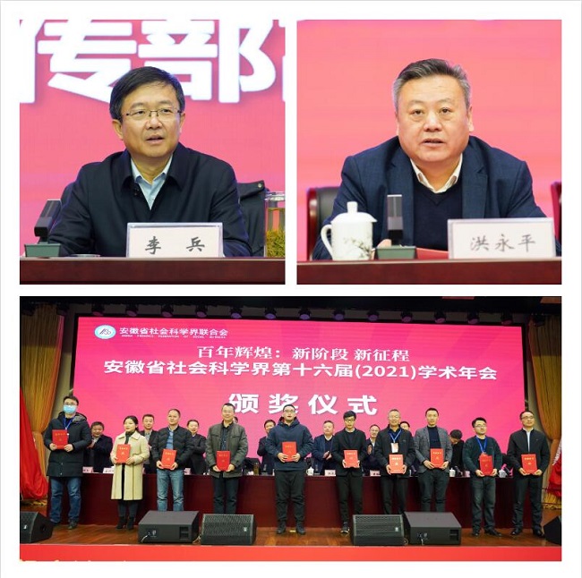省委教育工委副书记王佩刚,皖西学院党委书记、省社科联副主席袁维海,合肥工业大学党委副书记、省社科联副主席陈刚,安庆师范大学副校长汪时珍和省社科联党组成员、副主席江涛、刘涛、周祥飞等出席大会。与会领导为年会优秀论文一等奖获得者代表颁奖。